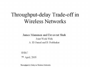 Throughputdelay Tradeoff in Wireless Networks PowerPoint PPT Presentation
