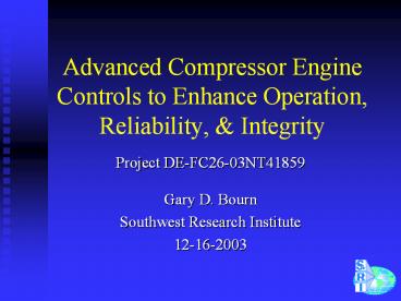 Title: Advanced Compressor Engine Controls to Enhance Operation, Reliability,