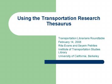 Using the Transportation Research Thesaurus PowerPoint PPT Presentation