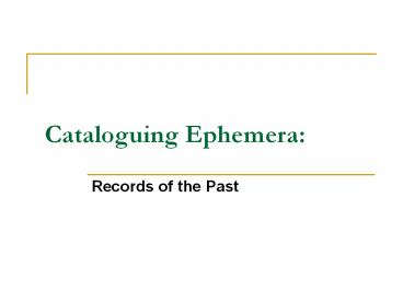 ephemeral material that is most important. - For example, in Ephemera The stuff of history