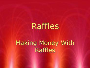 Numbered tickets. Prize disclosure and ... Who you can sell tickets to. Whether you need a gambling license or permit ... Keep all raffle tickets for 3 years ... – PowerPoint PPT presentation