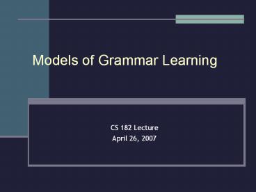 <Notice: Removed> Models of Grammar Learning PowerPoint PPT Presentation