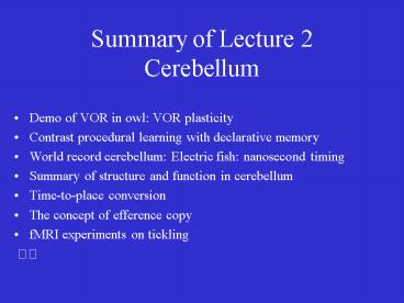 Summary of Lecture 2 Cerebellum PowerPoint PPT Presentation