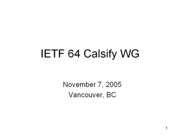 IETF 64 Calsify WG PowerPoint PPT Presentation
