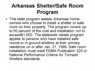 Arkansas ShelterSafe Room Program PowerPoint PPT Presentation