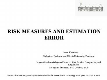 Title: RISK MEASURES AND ESTIMATION ERROR