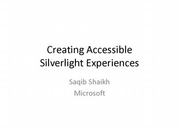 Creating Accessible Silverlight Experiences PowerPoint PPT Presentation