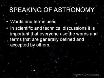 SPEAKING OF ASTRONOMY PowerPoint PPT Presentation