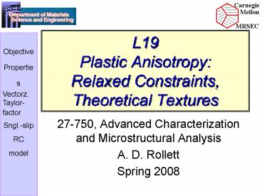 Title: L19 Plastic Anisotropy: Relaxed Constraints, Theoretical Textures