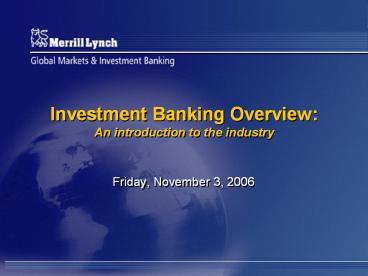 Title: Investment Banking Overview: An introduction to the industry