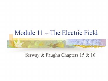 Module 11 The Electric Field PowerPoint PPT Presentation