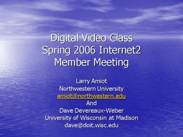 <Notice: Removed> Digital Video Class Spring 2006 Internet2 Member Meeting PowerPoint PPT Presentation