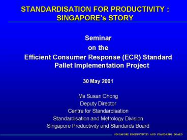 Title: STANDARDISATION FOR PRODUCTIVITY : SINGAPOREs STORY