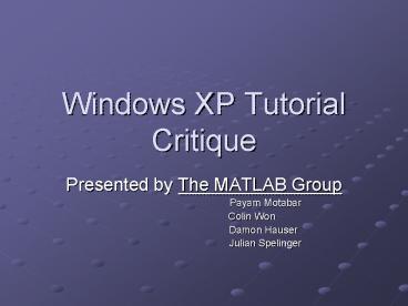 Windows XP Tutorial Critique PowerPoint PPT Presentation