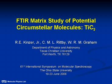 <Notice: Removed> FTIR Matrix Study of Potential Circumstellar Molecules: TiC3 PowerPoint PPT Presentation