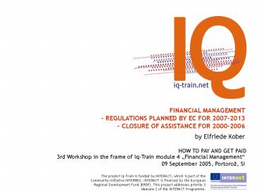after 2008 and not co-financed in the next period - - Info to EC after 2 years on implementation