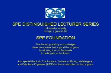 1SPE DISTINGUISHED LECTURER SERIES is funded