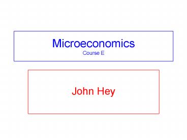 Microeconomics Course E PowerPoint PPT Presentation