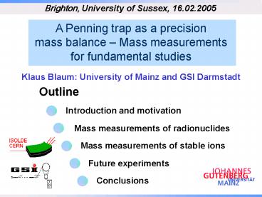 Klaus Blaum University of Mainz and GSI Darmstadt