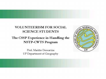 1VOLUNTEERISM FOR SOCIAL SCIENCE STUDENTS The CSSP