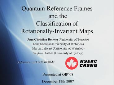Title: Quantum Reference Frames and the Classification of RotationallyInvariant Maps