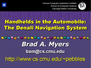 Title: Handhelds in the Automobile: The Denali Navigation System
