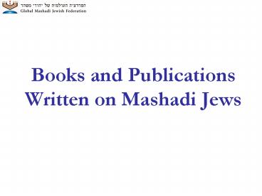 Books and Publications Written on Mashadi Jews PowerPoint PPT Presentation