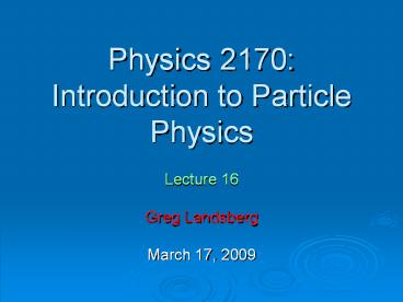 Physics 2170: Introduction to Particle Physics PowerPoint PPT Presentation