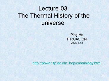 Title: Lecture03 The Thermal History of the universe
