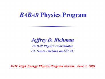 <Notice: Removed> BABAR Physics Program PowerPoint PPT Presentation