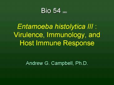Entamoeba histolytica III : Virulence, Immunology, and Host Immune Response PowerPoint PPT Presentation