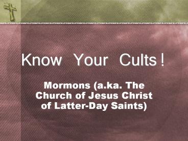 <Notice: Removed> Know Your Cults! PowerPoint PPT Presentation