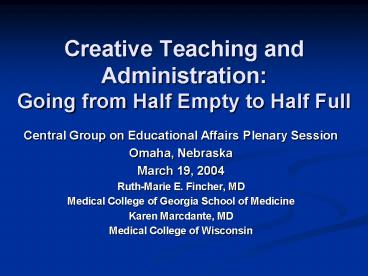 Title: Creative Teaching and Administration: Going from Half Empty to Half Full