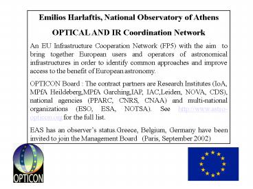 Athens OPTICAL AND IR Coordination Network An EU