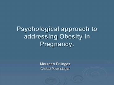 Title: Psychological approach to addressing Obesity in Pregnancy'