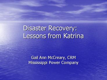 1Disaster RecoveryLessons from Katrina