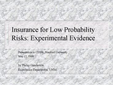 Insurance for Low Probability Risks: Experimental Evidence PowerPoint PPT Presentation