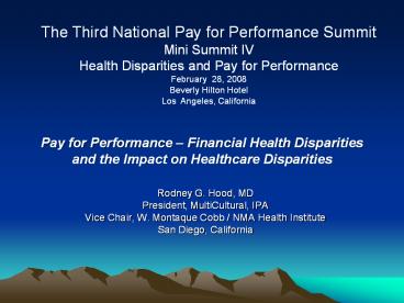 Summit Mini Summit IV Health Disparities and Pay