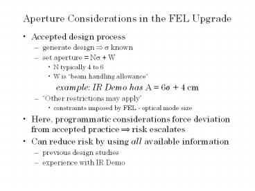 <Notice: Removed> Aperture Considerations in the FEL Upgrade PowerPoint PPT Presentation