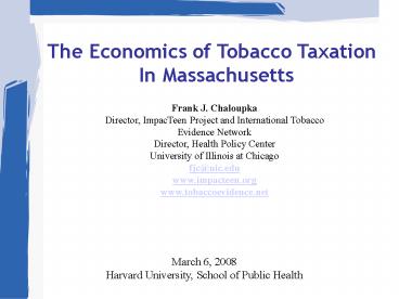 1The Economics of Tobacco Taxation In Massachusetts