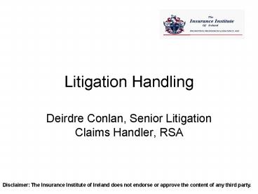 • Deirdre Conlan, Senior Litigation Claims Handler,