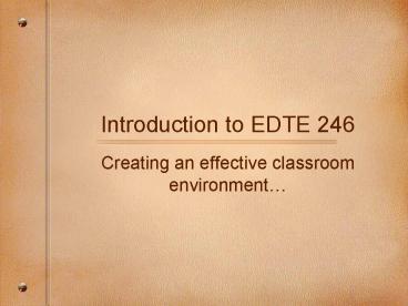 Introduction to EDTE 246 PowerPoint PPT Presentation