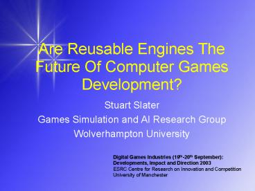 Title: Are Reusable Engines The Future Of Computer Games Development