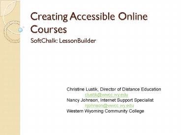 Creating Accessible Online Courses PowerPoint PPT Presentation