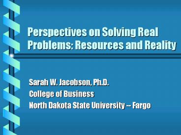 <Notice: Removed> Perspectives on Solving Real Problems: Resources and Reality PowerPoint PPT Presentation