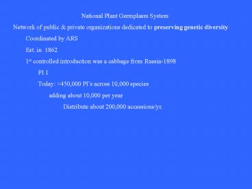 genetic or biodiversity preservation - Collect, characterize, and conserve PLANT, FISH,
