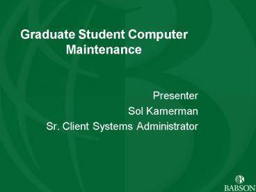 <Notice: Removed> Graduate Student Computer Maintenance PowerPoint PPT Presentation