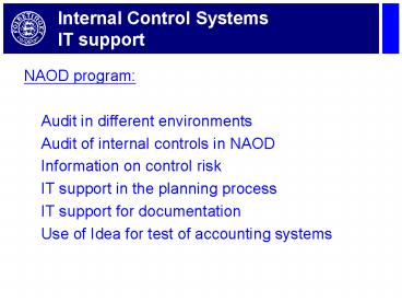 Internal Control Systems IT support PowerPoint PPT Presentation