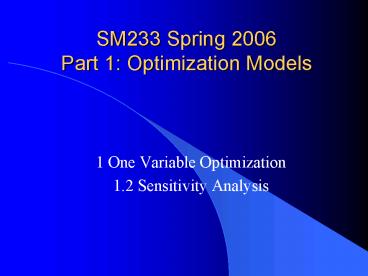 SM233 Spring 2006 Part 1: Optimization Models PowerPoint PPT Presentation