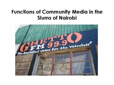 Functions of Community Media in the Slums of Nairobi PowerPoint PPT Presentation
